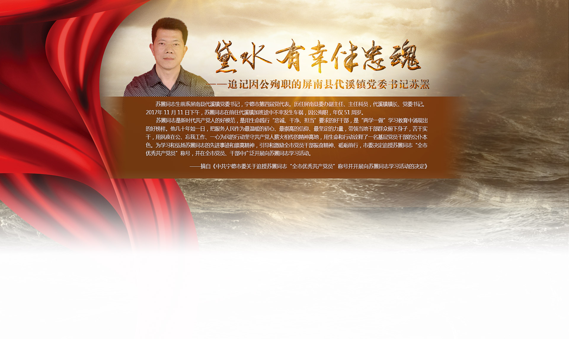 黛水有幸伴忠魂——追记因公殉职的屏南县代溪镇党委书记苏罴